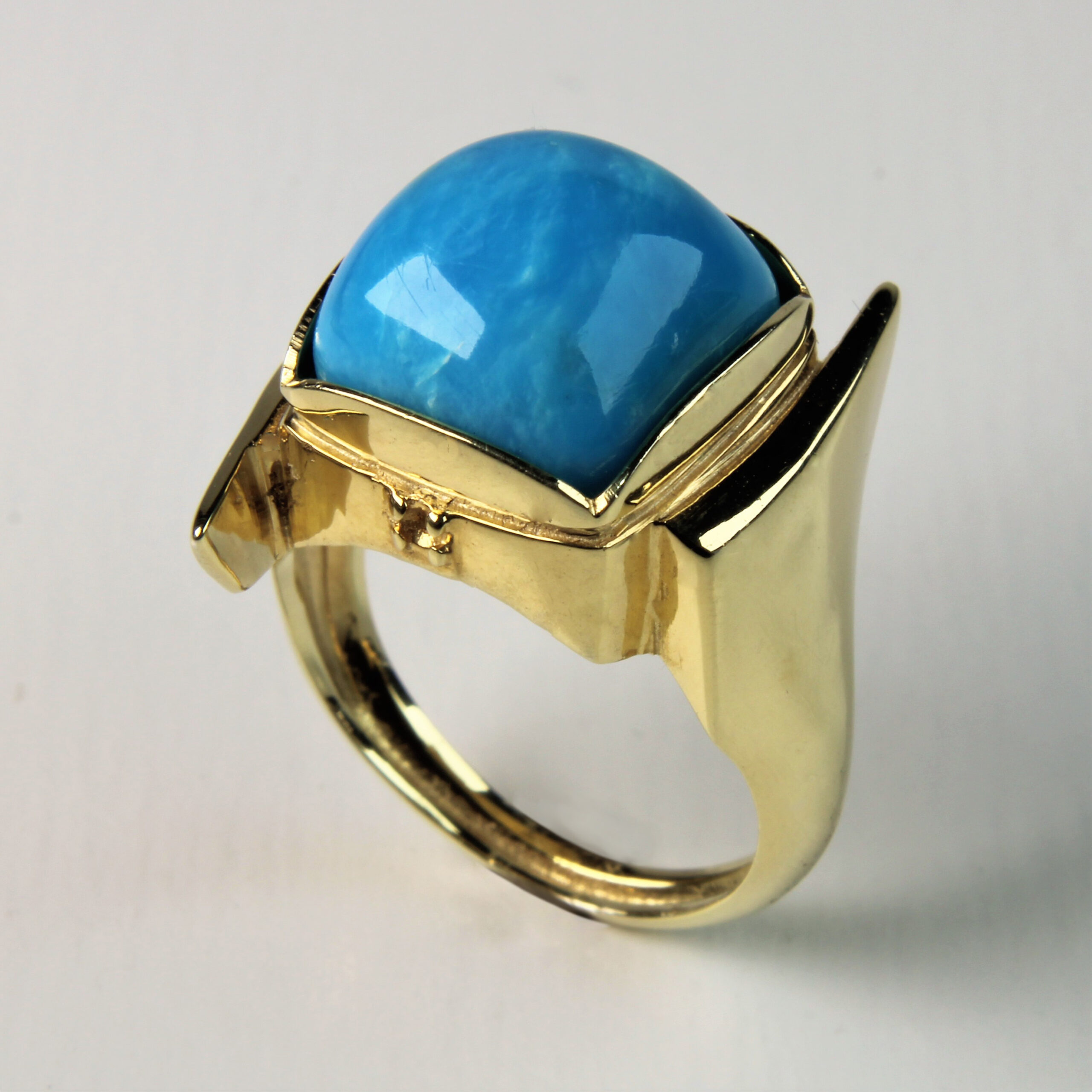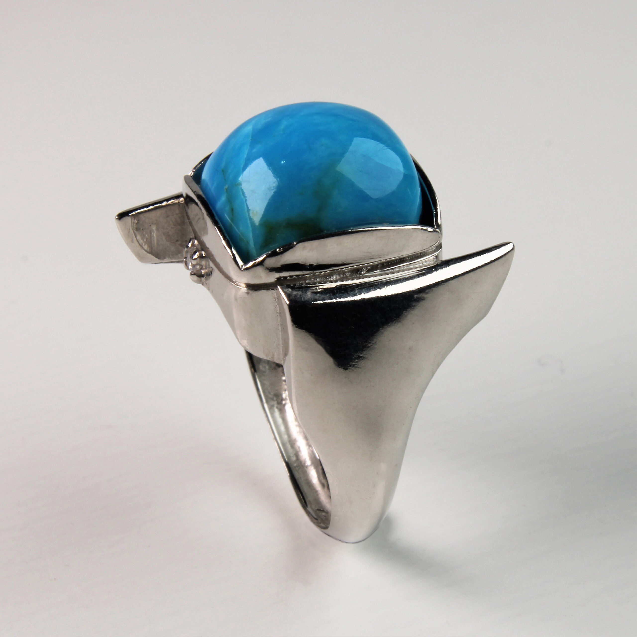 Sopra è incastonato un cabochon in turchese naturale dell’Arizona