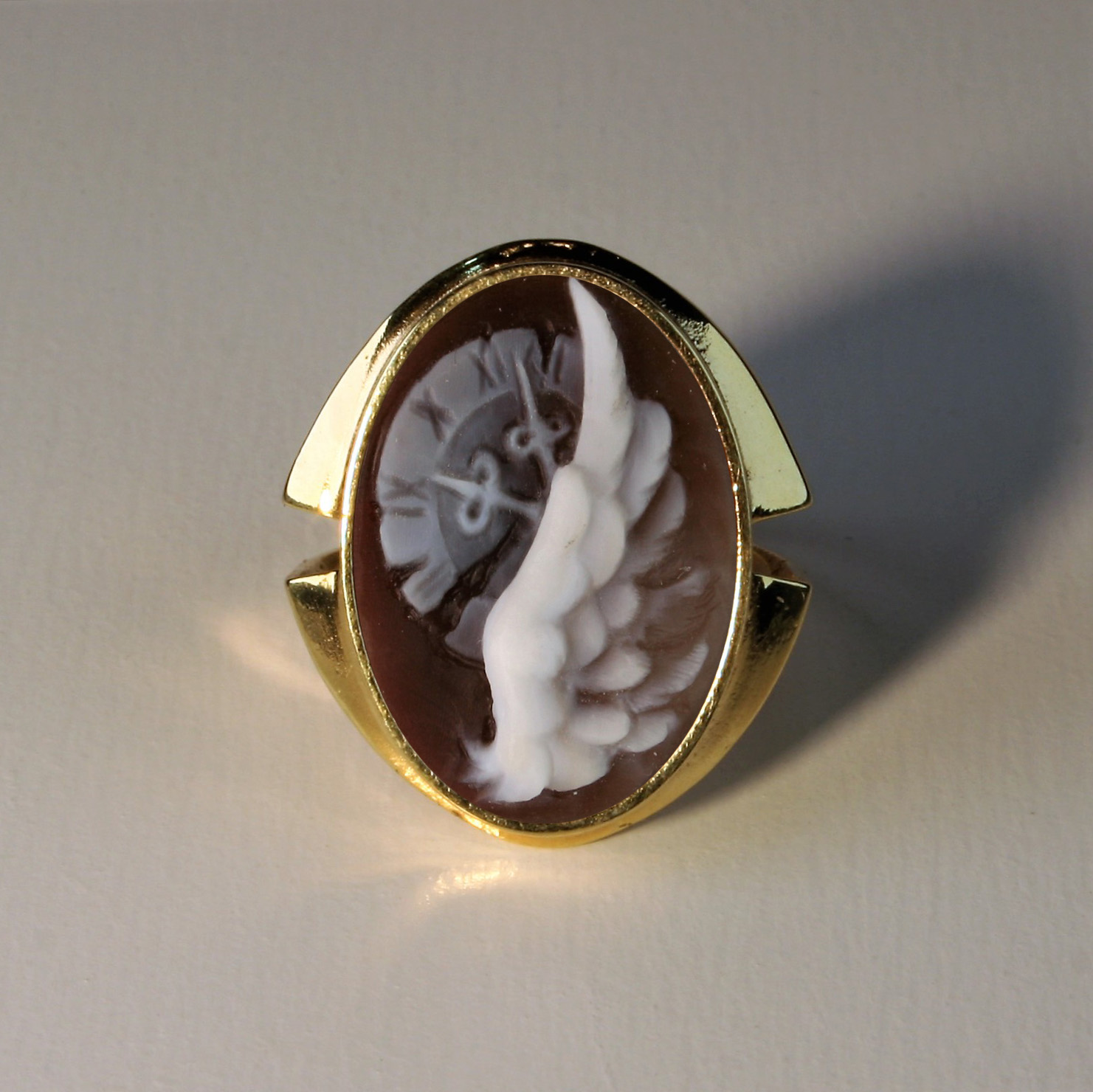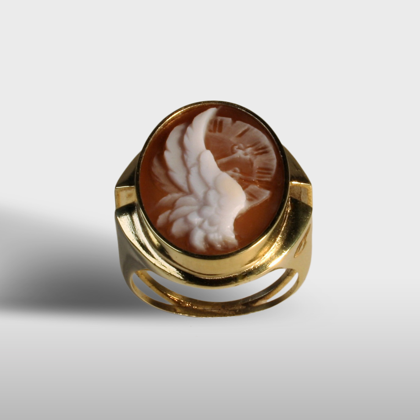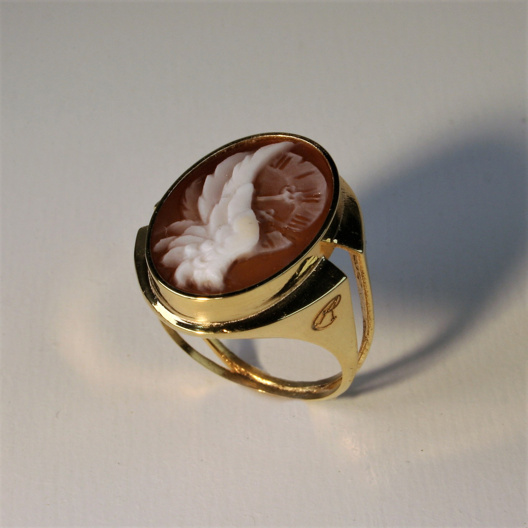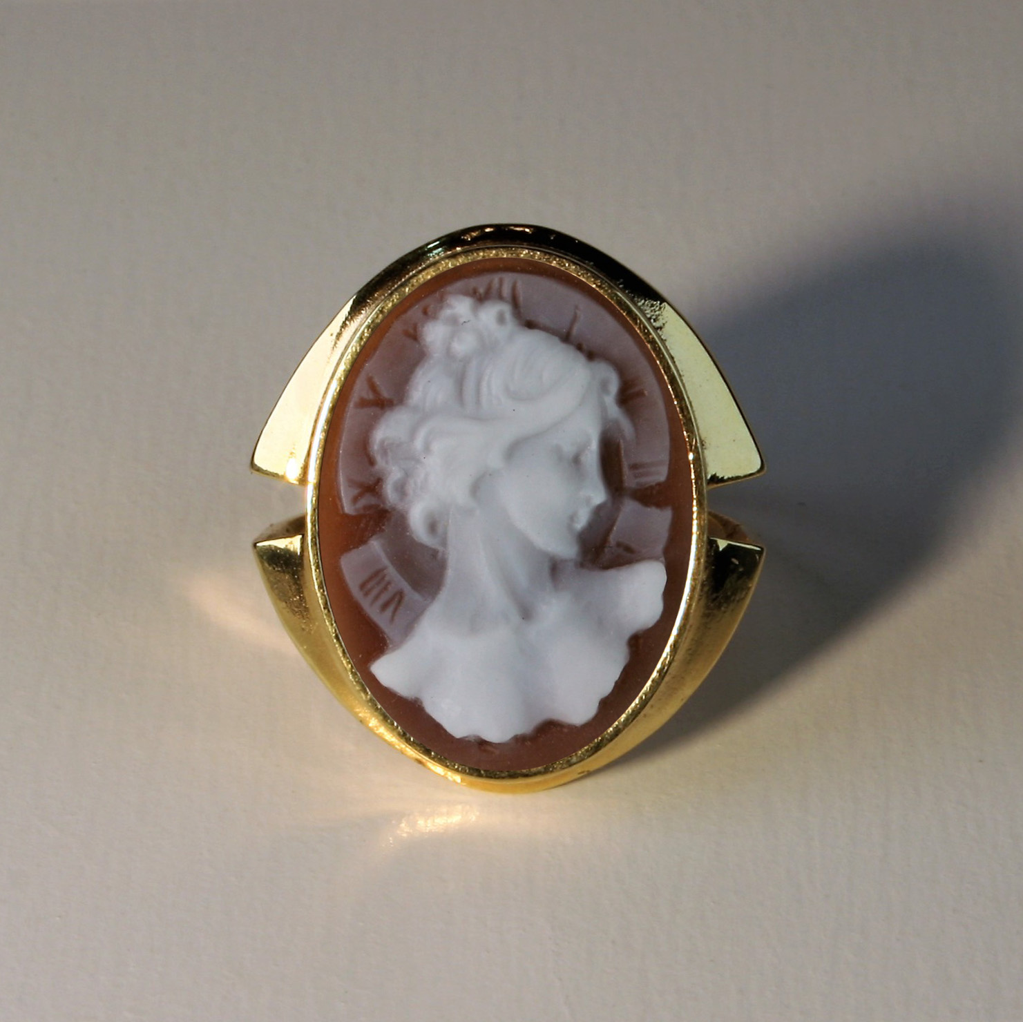 Oro giallo oppure oro bianco, 18kt o 14kt con cammeo in cassis madagascariensis