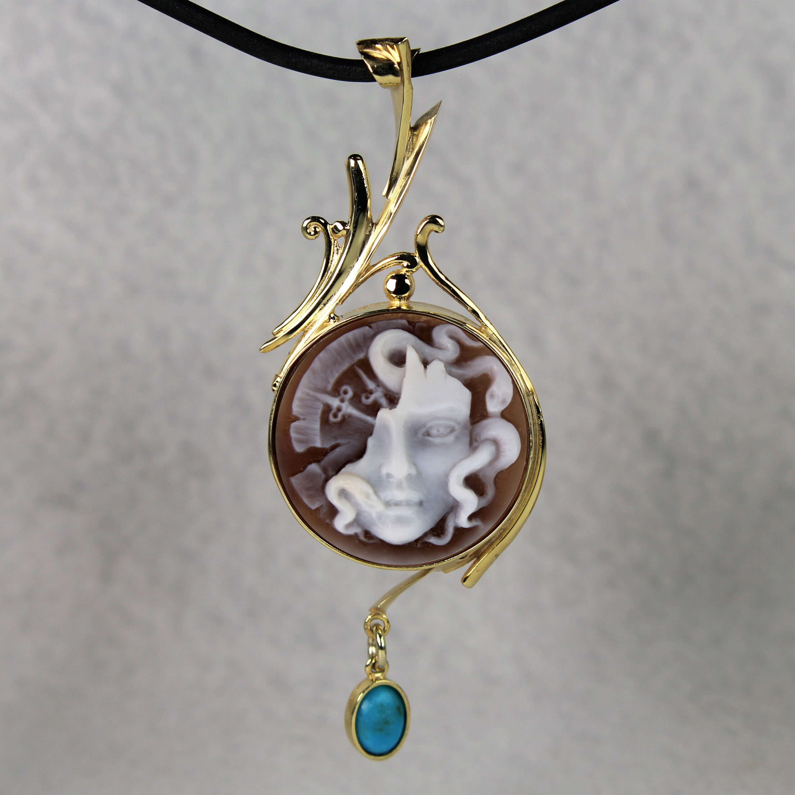 Al centro è presente un cammeo in conchiglia interamente inciso a mano