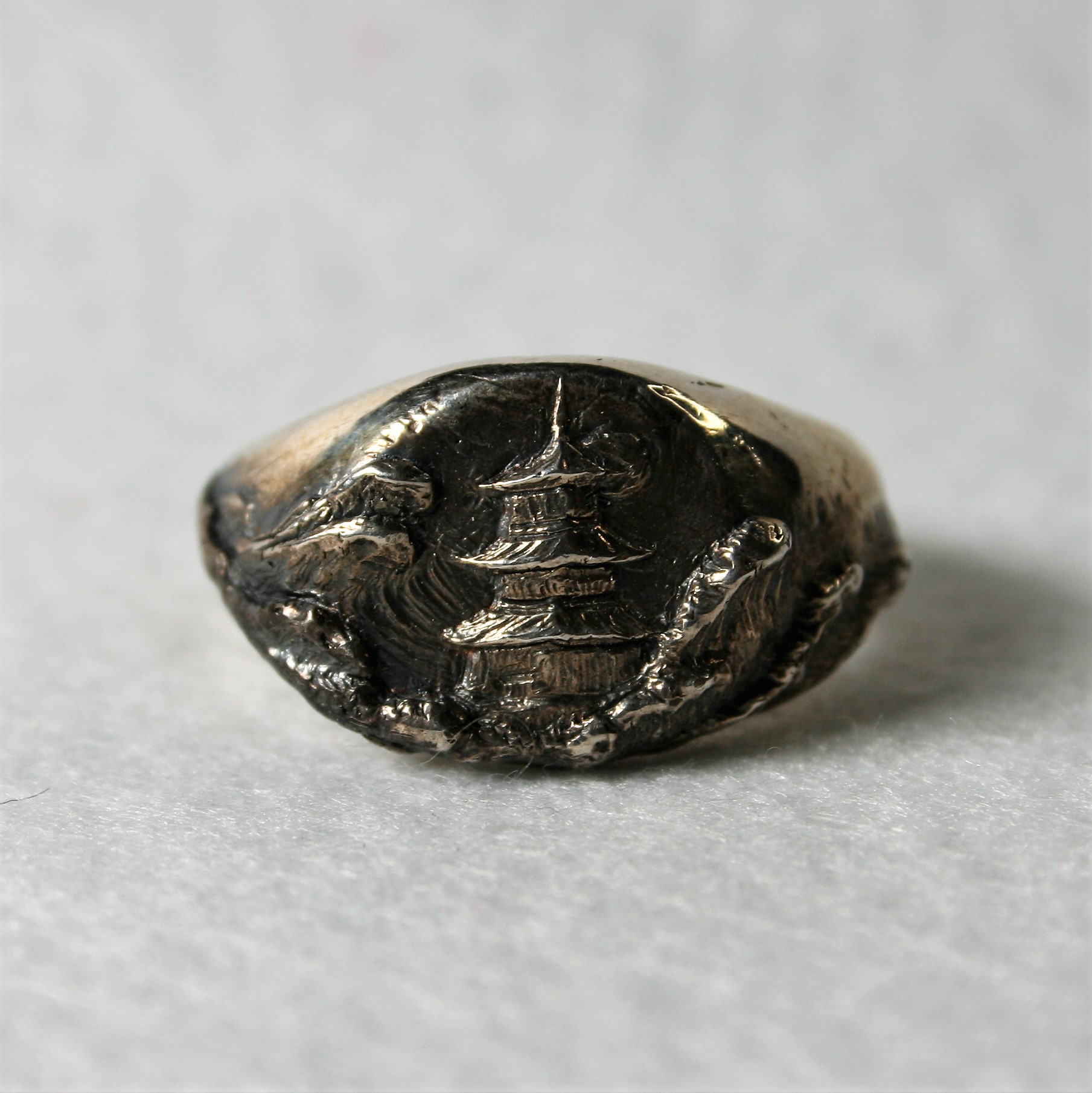 139.39 $ VAT IncludedThe ring "Japan" for Man features a typically Japanese subject, skilfully engraved in silver.